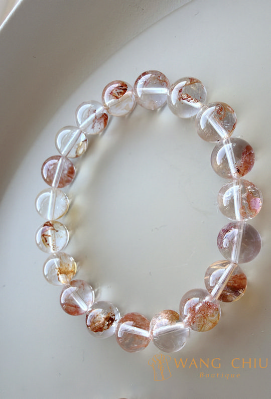 白水晶在形成時內部產生縫隙,鐵等礦物滲入形成片狀或花紋紋理,像火焰或花瓣一樣,能量非常熱烈。